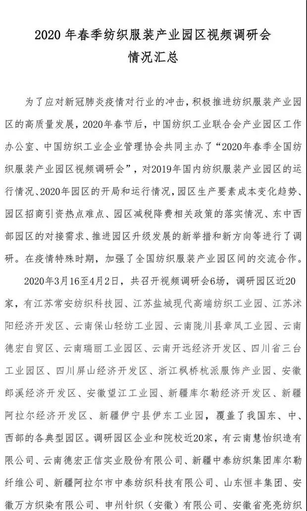 您现在的位置是:首页 > 要闻 2020年春季纺织服装产业园区视频调研会情况汇总 发布日期:2020-04-20 字体: 【小】 【中】 【大】 分享: 热门文章: 2025intertextile春夏 | “友礼”同享齐观展... [2025-02-19] 2024年我国纺织行业经济运行总体平稳 [2025-02-17] 聚焦绿色智慧融合 展示产业用纺织品新趋势 [2025-02-11] 响应政策 落实服务 | PH Value义乌展全力“备战”中 [2025-02-11] 【亮星季】第一期正式开启 | 商贸先行,品质好礼享不停 [2025-02-10] 展会直通车