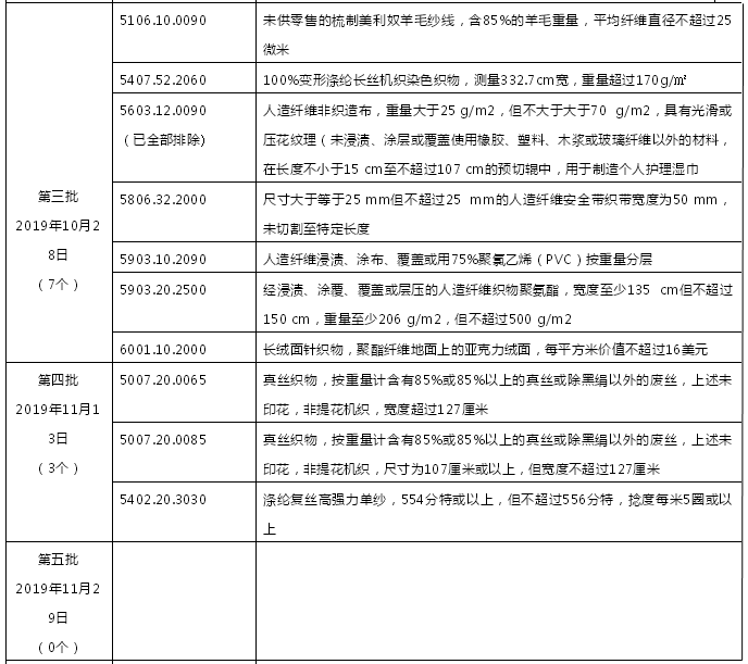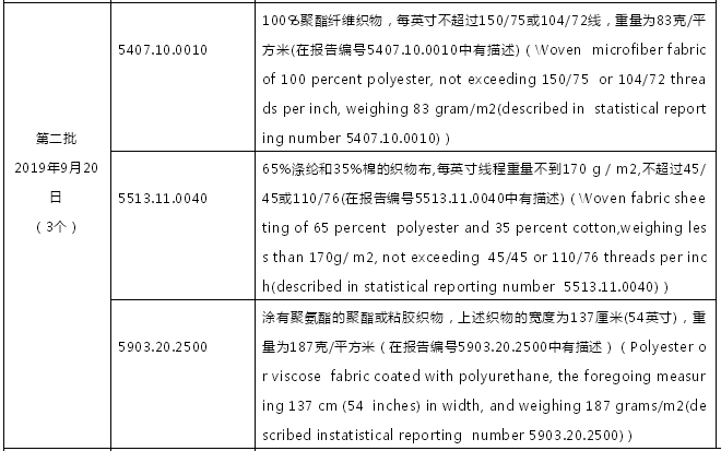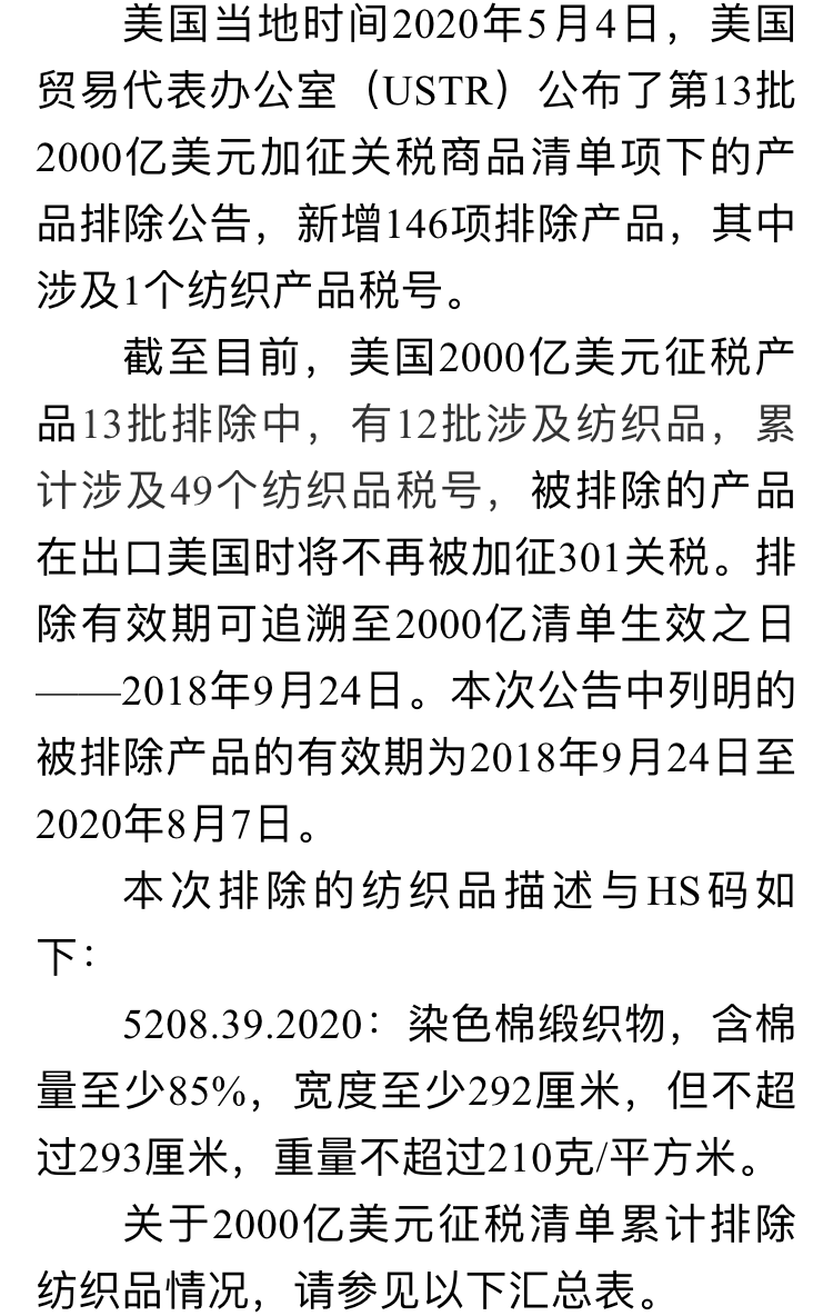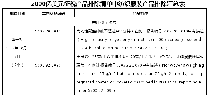 含1个涉纺产品,美发布2000亿美元加税产品第13批排除清