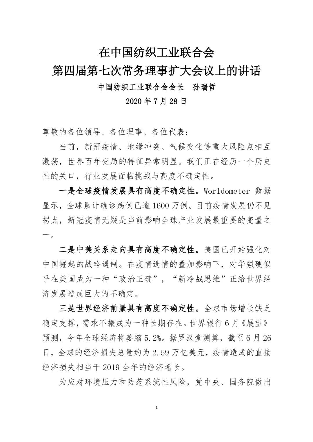 您现在的位置是:首页 > 要闻 孙瑞哲:在危机中寻转机,树立五大思维 发布日期:2020-07-30 字体: 【小】 【中】 【大】 7月28日,中国纺织工业联合会第四届第七次常务理事视频扩大会议在北京举行,中国纺织工业联合会会长孙瑞哲出席会议并在会上发言。《纺织服装周刊》特将讲话原文刊发于此,以飨读者。 分享: 热门文章: 2025intertextile春夏 | “友礼”同享齐观展... [2025-02-19] 2024年我国纺织行业经济运行总体平稳 [2025-02-17] 聚焦绿色智慧融合 展示产业用纺织品新趋势 [2025-02-11] 响应政策 落实服务 | PH Value义乌展全力“备战”中 [2025-02-11] 【亮星季】第一期正式开启 | 商贸先行,品质好礼享不停 [2025-02-10] 展会直通车