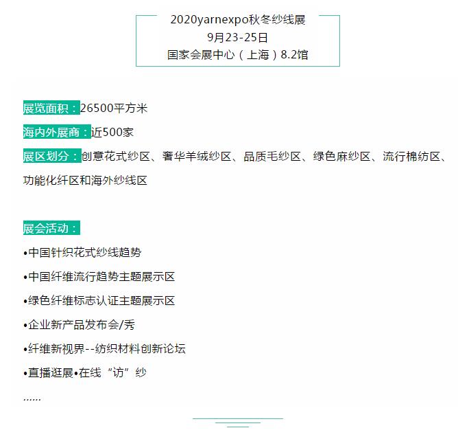 专业展会是最直接的商贸平台,也是行业发展的晴雨表和风向标。“持久战”、“新发展格局”下,展会对企业开拓市场、焕发活力,加快转型升级,融入“双循环”的作用更显著。特别是yarnexpo秋冬纱线展,更是从源头畅通纺织产业链大动脉,成为推动产业复苏和高质量发展的"风向标"。