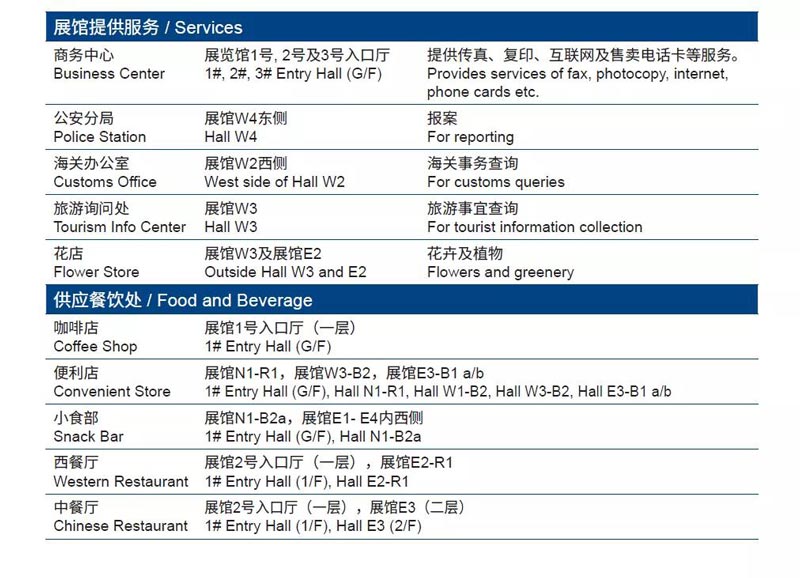 下面您将了解到交通信息,馆内交通,展商报到,入馆提醒,入馆流程,展商胸卡,展期安排,展商邀请VIP专属卡,布撤展人员通行证、布撤展车辆入场轮候证、布撤展货运车辆停车证,暖心服务等详细信息。