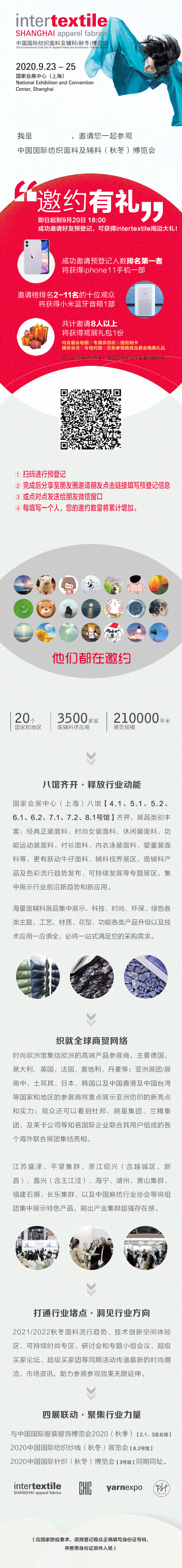 您现在的位置是:首页 > 要闻 intertextile秋冬展| 参观邀约有好礼,iphone11等您拿 来源:intertextile面辅料展 发布日期:2020-09-07 字体: 【小】 【中】 【大】 分享: 热门文章: 2025intertextile春夏 | “友礼”同享齐观展... [2025-02-19] 2024年我国纺织行业经济运行总体平稳 [2025-02-17] 聚焦绿色智慧融合 展示产业用纺织品新趋势 [2025-02-11] 响应政策 落实服务 | PH Value义乌展全力“备战”中 [2025-02-11] 【亮星季】第一期正式开启 | 商贸先行,品质好礼享不停 [2025-02-10] 展会直通车