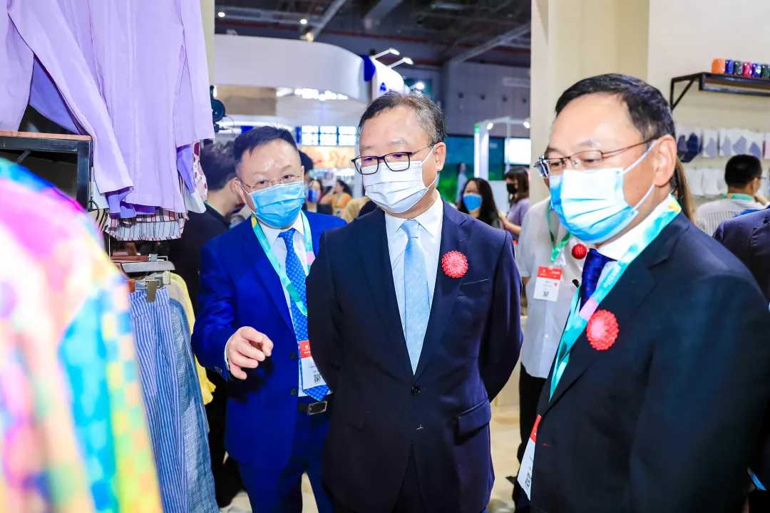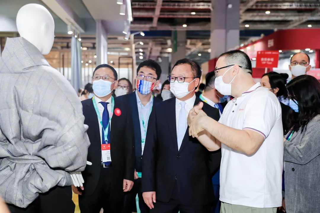 中国纺织工业联合会党委书记兼秘书长高勇,会长孙瑞哲,原会长杜钰洲、王天凯,原副会长许坤元,党委副书记陈伟康,副会长徐迎新、陈大鹏、李陵申、杨兆华,原副会长杨东辉、张延恺、杨纪朝等领导与嘉宾参观了本届联展。面辅料展主办方中国国际贸易促进委员会纺织行业分会常务副会长梁鹏程、副会长常清,中国纺织信息中心主任乔艳津,法兰克福展览(香港)有限公司高级总经理温婷等负责人陪同领导嘉宾一行参观了本届展览会。