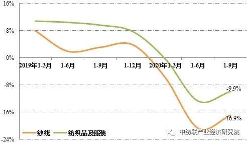 受疫情造成消费需求疲软影响,越南纺织品服装出口规模下滑,配套原料的进口规模也随之出现缩减。据越南海关统计,2020年1~9月,越南向全球出口纱线25.7亿美元,同比减少16.9%;出口其他纺织制品及服装221.6亿美元,同比减少9.9%。1~9月,越南自全球进口纱线14.4亿美元,同比减少20.9%;进口织物面料84.3亿美元,同比减少13.4%。如图1、图2所示,疫情之下,越南纺织品服装进出口贸易明显承压,贸易额增速仍位于负增长区间,且较上年同期有明显下滑,但与疫情集中爆发的5~6月相比,降幅呈现逐步收窄趋势,国际市场供求形势出现边际改善。