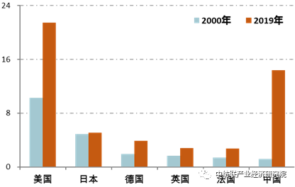 本世纪以来,国际力量对比格局发生显著变化。经济全球化鼎盛时期,发达国家与发展中国家经济发展速度长时间两极分化(见图1),新兴经济体在国际经济、政治舞台上集体崛起。我国作为日渐发展成熟的发展中大国,正在无限接近国际舞台中央,在实现全面脱贫和小康社会之后,庞大、优质的内需市场将成为世界经济的核心引擎。近年来,发达国家掀起逆全球化思潮,单边主义、保护主义抬头,中美贸易冲突尤为激烈,体现出以美国为首的发达国家对于WTO框架下全球多边合作机制所带来的利益分配格局严重不满, CPTPP、EPA、EVFTA等由美、欧、日超大型经济体主导的区域自贸协定相继签署,表明发达国家正力图构建更加有利于自身利益的国际经济合作新秩序。“十四五”时期,以WTO为中心的全球化机制或将陷入停滞,国际合作机制的重大变化将对世界经济发展、国际产业布局产生重要影响。