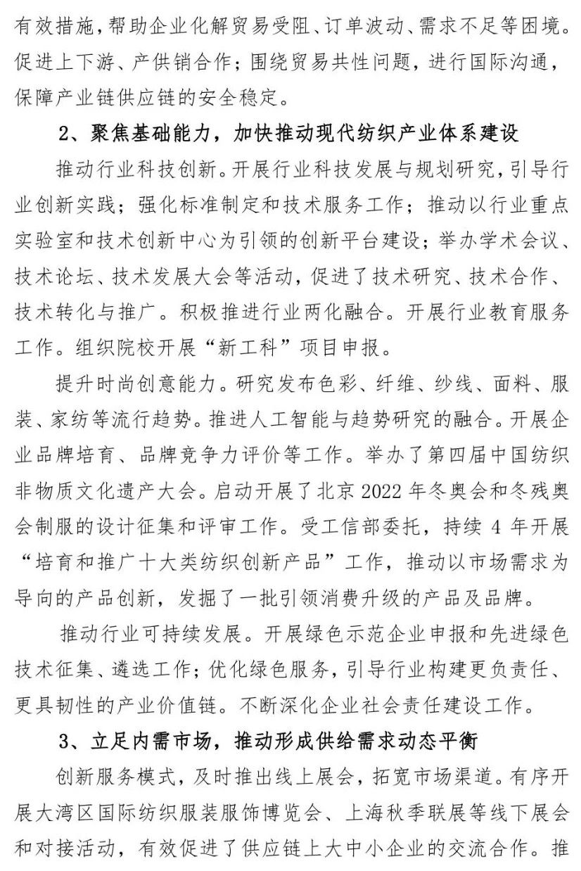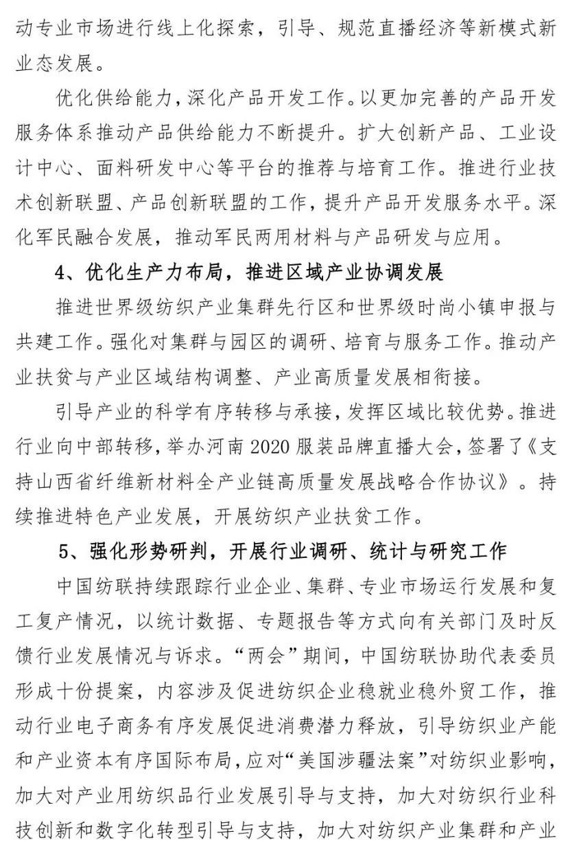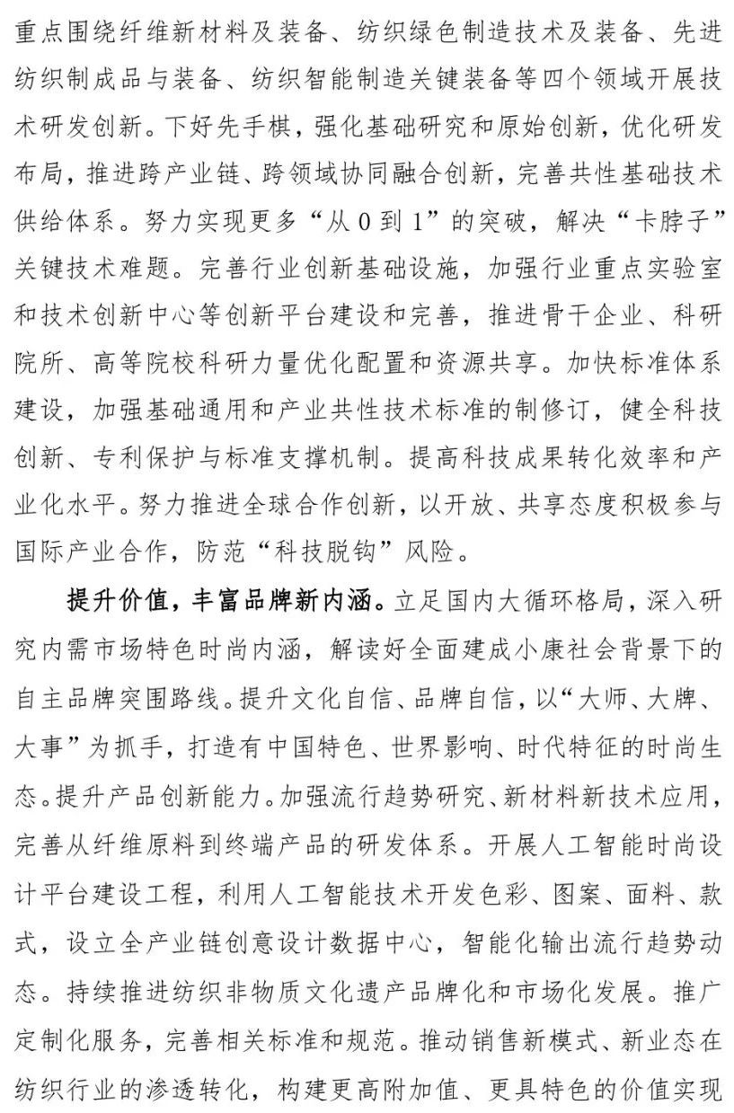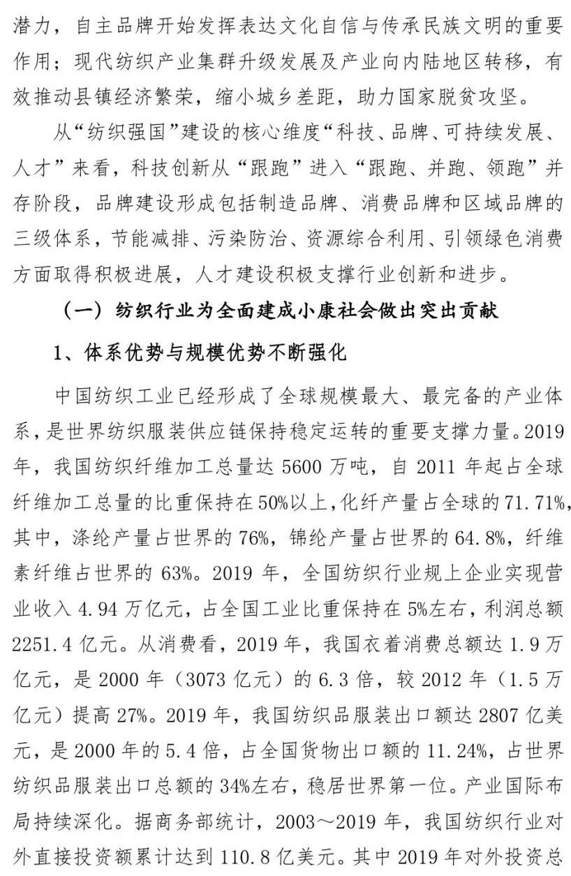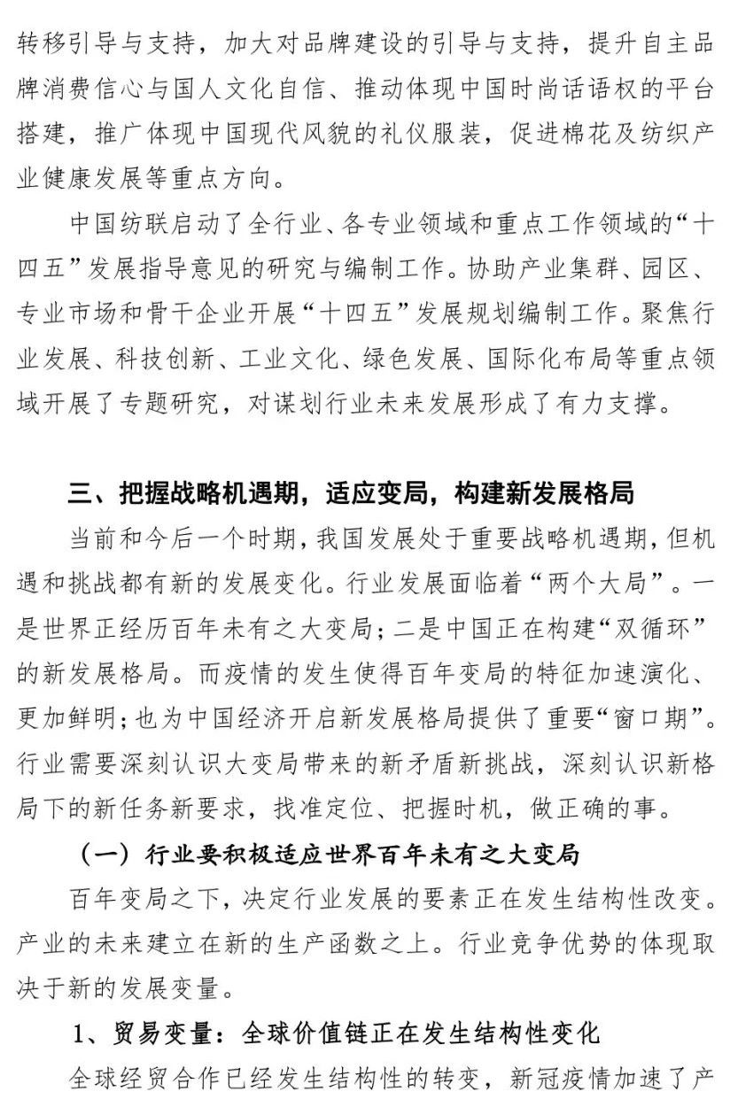 您现在的位置是:首页 > 要闻 孙瑞哲:纺织强国再出发,谱写高质量发展新篇章 来源:纺织服装周刊 发布日期:2020-12-28 字体: 【小】 【中】 【大】 12月22日,2020年中国纺织大会在山西太原隆重召开。中国纺织工业联合会会长孙瑞哲作了题为《纺织强国再出发 谱写高质量发展新篇章》的中国纺联工作报告。《纺织服装周刊》特将报告原文刊发于此,以飨读者。 分享: 热门文章: 2025intertextile春夏 | “友礼”同享齐观展... [2025-02-19] 2024年我国纺织行业经济运行总体平稳 [2025-02-17] 聚焦绿色智慧融合 展示产业用纺织品新趋势 [2025-02-11] 响应政策 落实服务 | PH Value义乌展全力“备战”中 [2025-02-11] 【亮星季】第一期正式开启 | 商贸先行,品质好礼享不停 [2025-02-10] 展会直通车