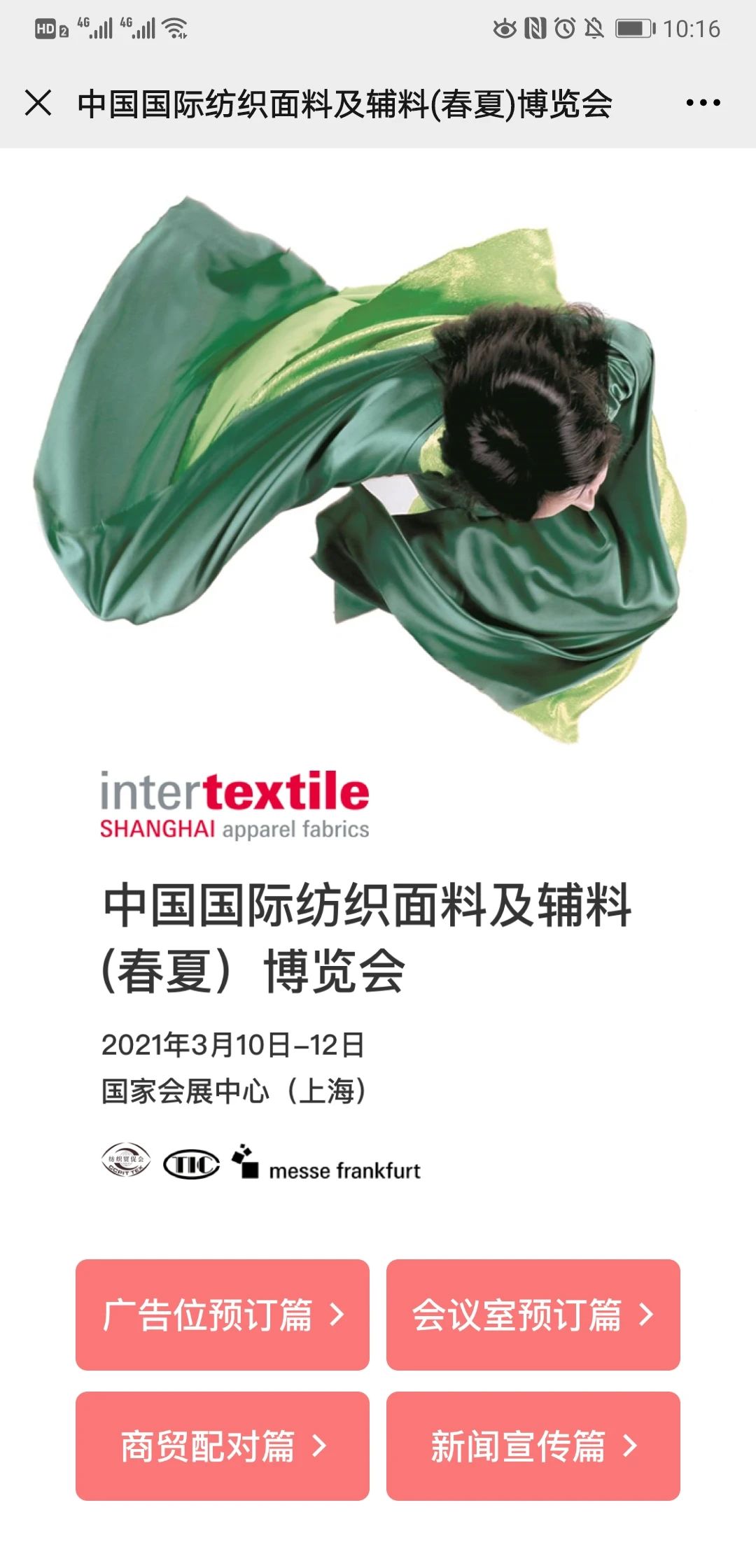 作为全球规模最大的专业面辅料展会,intertextile 2021春夏面辅料展整合平台资源,四项展商配套服务全新升级,为您带来展前、展中、展后的获客流量。