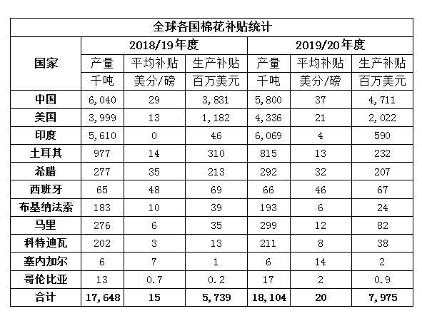 2018/19年度和2019/20年度,西非一些国家为棉花生产投入尤其是化肥和种子提供补贴。2019/20年度,西非各国棉花补贴金额如下:布基纳法索2400万美元(6美分/磅),马里8200万美元(12美分/磅),科特迪瓦3800万美元(8美分/磅),塞内加尔200万美元(14美分/磅)。