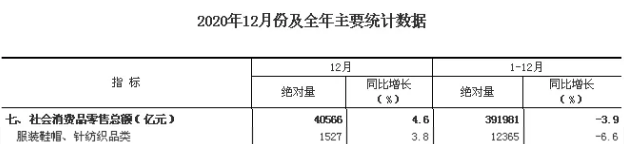 根据国家统计局数据,全国限额以上单位服装鞋帽针纺织品零售额同比降幅从年初超过30%逐步收窄至1-11月7.9%,8月以后单月零售额一直保持正增长。1-11月全国网上穿类商品零售规模同比增长5.9%。