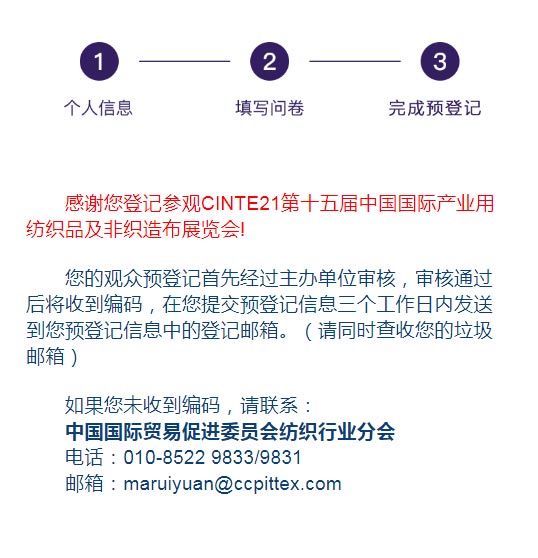 如需修改,可再次登录观众登记链接进行更换,如仍需要帮助,请提供注册时的姓名+手机号码,说明需要修正的内容,发送邮件至maruiyuan@ccpittex.com,主办方工作人员将协助为您更正信息。