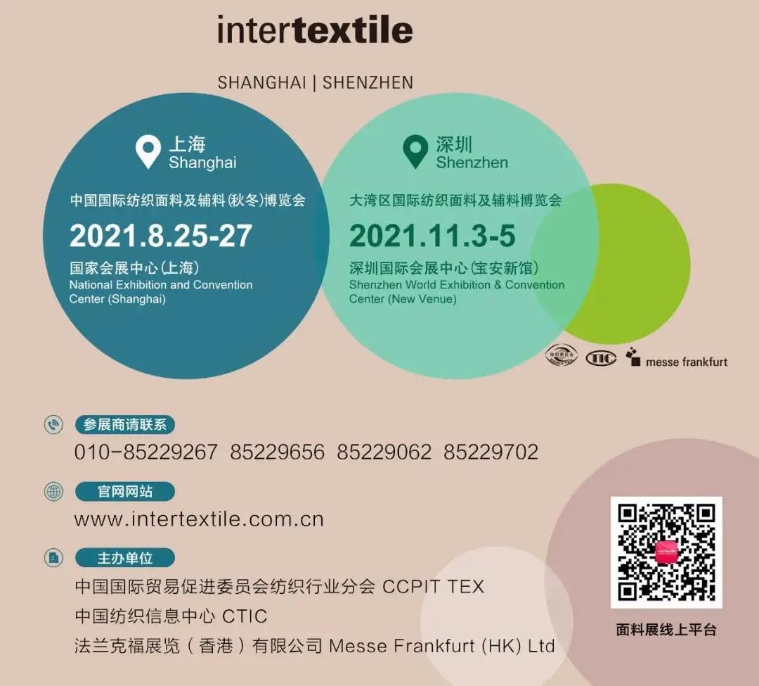 进入到2021年的下半场,纺织企业最为关注的莫过于即将在下半年举行的行业大展––2021年8月25-27日,中国国际纺织面料及辅料(秋冬)博览会将于上海举办,2021年11月3-5日大湾区国际纺织面料及辅料博览会将于深圳举办。这些重点商机的不仅决定着下半年的市场开拓,更关系着来年的发展。