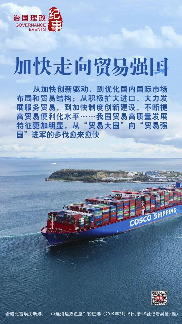 ◇ 从加快创新驱动,到优化国内国际市场布局和贸易结构;从积极扩大进口、大力发展服务贸易,到加快制度创新建设,不断提高贸易便利化水平……我国贸易高质量发展特征更加明显,从“贸易大国”向“贸易强国”进军的步伐愈来愈快