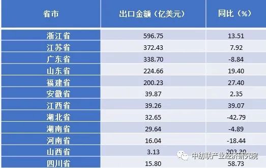 西部出口快速增长,东部稳步推进,浙江、江苏、山东、福建增速超全国平均水平。