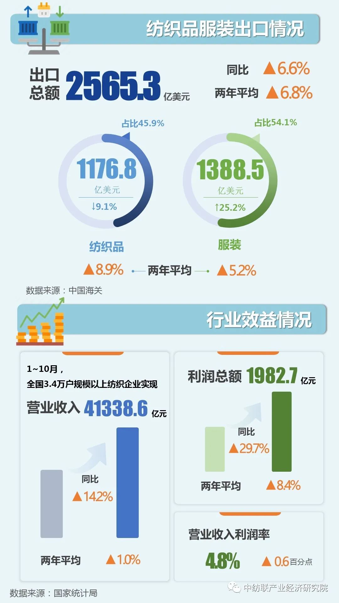 您现在的位置是:首页 > 要闻 “数”说纺织:2021年1~10月 来源:中国纺联产业经济研究院 发布日期:2021-12-07 字体: 【小】 【中】 【大】 分享: 热门文章: 2025intertextile春夏 | “友礼”同享齐观展... [2025-02-19] 2024年我国纺织行业经济运行总体平稳 [2025-02-17] 聚焦绿色智慧融合 展示产业用纺织品新趋势 [2025-02-11] 响应政策 落实服务 | PH Value义乌展全力“备战”中 [2025-02-11] 【亮星季】第一期正式开启 | 商贸先行,品质好礼享不停 [2025-02-10] 展会直通车