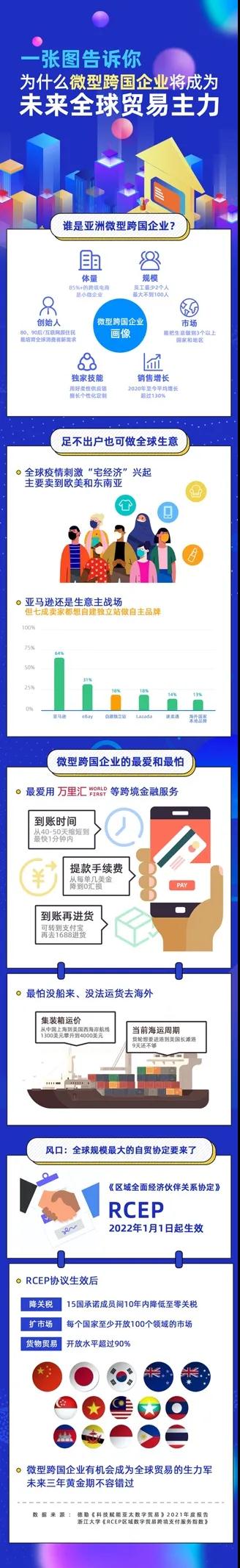 同样在今天新鲜出炉的德勤2021年度《科技赋能亚太数字贸易》报告也显示:2020全球疫情以来全球数字贸易逆势上扬,亚洲“微型跨国企业”在RCEP政策红利和数字技术助力下,正尝试关键一跃。