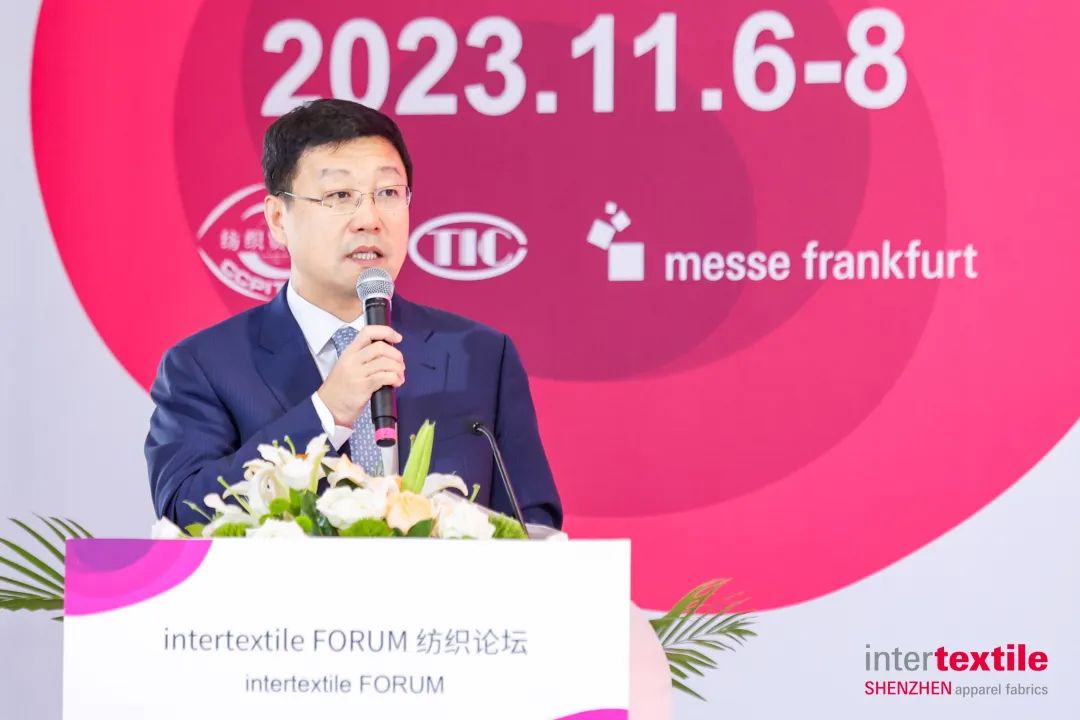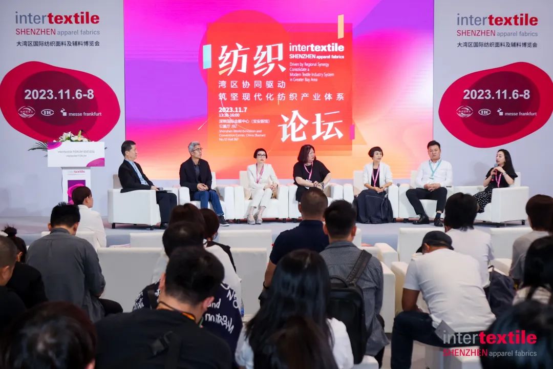 第二日,2023 intertextile大湾区面辅料展多场主题论坛、专题研讨精彩继续呈现。intertextile FORUM纺织论坛(大湾区)以“湾区协同驱动,筑坚现代化纺织产业体系”为主题,盛邀业内专家、企业家、设计师以及来自供应链不同位置的同仁们展开了一场关于“把握湾区机遇推进构建具备高端化、智能化、绿色化特征和符合完整性、先进性、安全性要求的现代化产业体系的精彩讨论。中国国际贸易促进委员会纺织行业分会常务副会长梁鹏程,法兰克福展览(香港)有限公司董事总经理温婷为论坛致辞。
