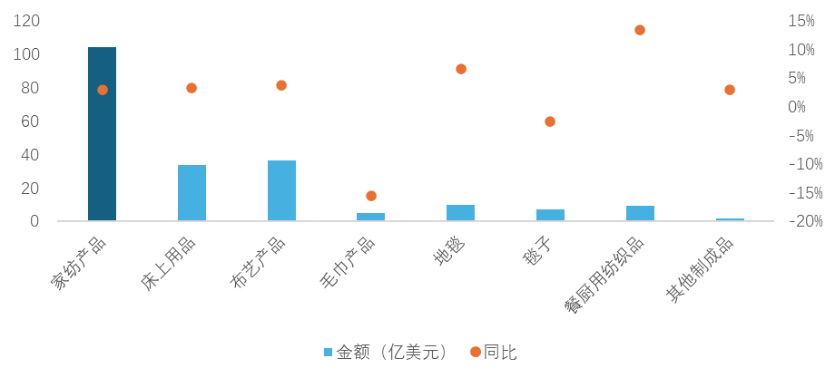图3. 2023年-2024年一季度我国家纺产品出口额增速