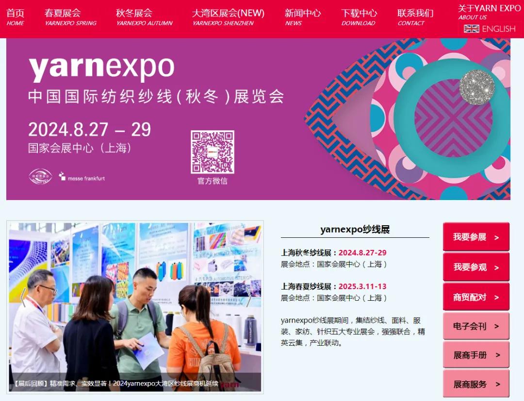 8月27-29日,2024yarnexpo中国国际纺织纱线(秋冬)展览会(以下简称:yarnexpo秋冬纱线展)将于国家会展中心(上海)8.2馆盛大举办。