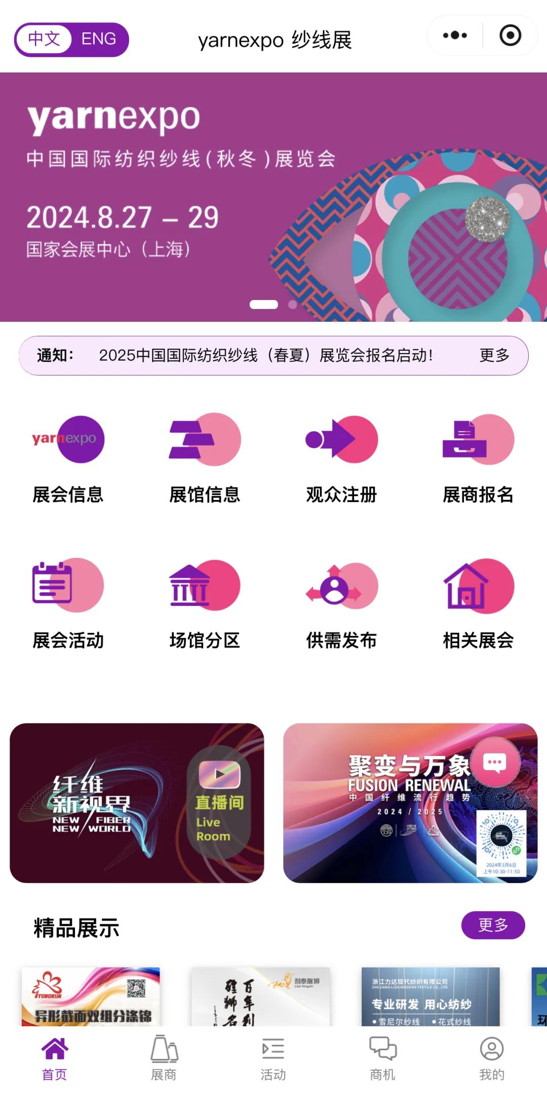 8月27-29日,2024yarnexpo中国国际纺织纱线(秋冬)展览会将携手intertextile中国国际纺织面料及辅料(秋冬)博览会、CHIC中国国际服装服饰博览会(秋季)、PH Value中国国际针织(秋冬)博览会于国家会展中心(上海)盛大启幕。