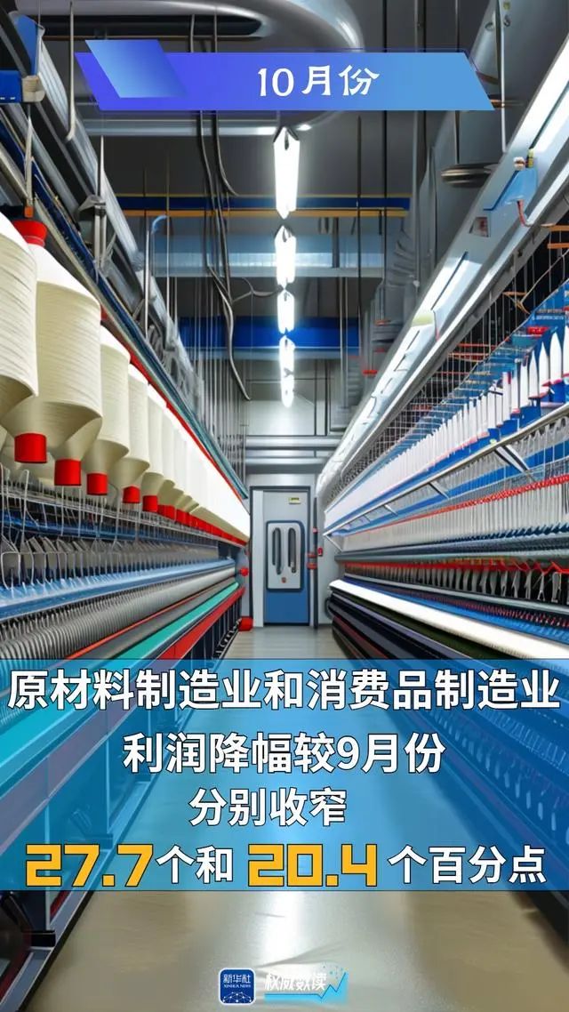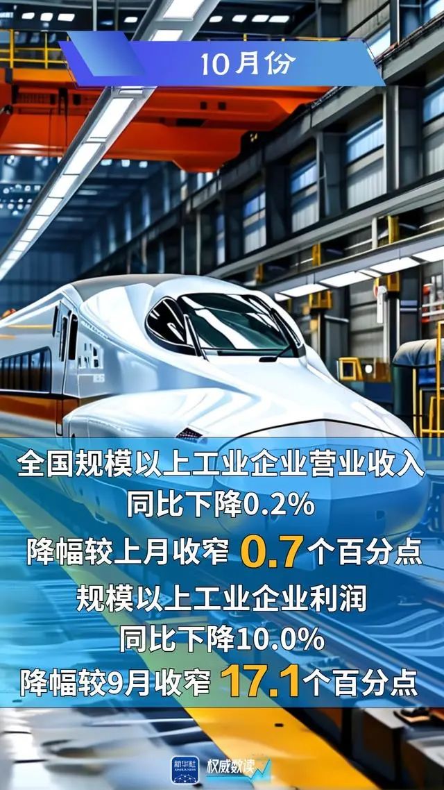 来自国家统计局的最新数据分析指出,10月份,随着存量政策及一揽子增量政策协同发力、持续显效,规模以上工业企业生产稳定增长,企业利润当月降幅明显收窄。