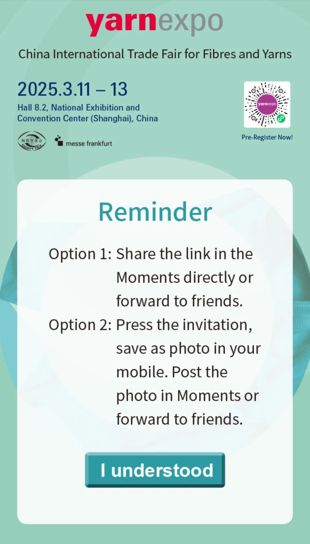 请点击“我知道了”按钮,成生请柬。长按生成页面保存图片转发,或直接转发至朋友圈。