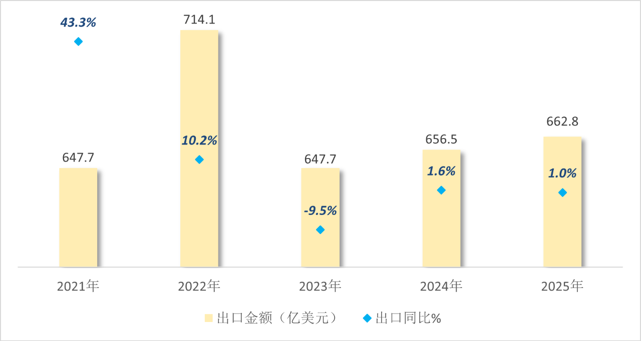 图1 2021~2025年我国纺织品服装一季度出口贸易统计(单位:亿美元)