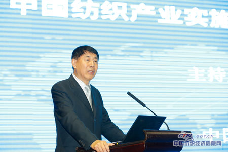 有请中国纺织品进出口商会会长江辉发言,他的题目是:“共同努力 促进中国纺织服务业走出去”。